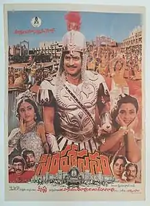 Simhasanam (transl. Throne) is a 1986 Indian Telugu-language epic historical film written, directed, edited, and produced by Krishna, who starred alongside Jaya Prada, Radha, and Mandakini. The film was simultaneously made in Hindi as Singhasan. Based on a folklore tale, the film released on 21 March 1986.[1] Simhasanam is the first 70 mm stereophonic sound film in Telugu cinema.