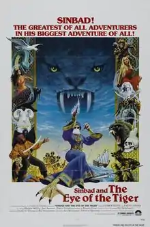 Sinbad and the Eye of the Tiger is a 1977 fantasy adventure film directed by Sam Wanamaker and featuring stop-motion effects by Ray Harryhausen. The film stars Patrick Wayne, Taryn Power, Jane Seymour and Patrick Troughton. The third and final Sinbad film released by Columbia Pictures, it follows The 7th Voyage of Sinbad (1958) and The Golden Voyage of Sinbad (1973).