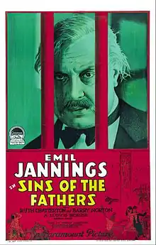 Sins of the Fathers is a 1928 American sound part-talkie drama film produced by Famous Players–Lasky and released by Paramount Pictures. Like the majority of films during the early sound era, it was also issued in a silent version for theaters which were not yet wired for sound. The film was directed by Ludwig Berger and stars Emil Jannings and Ruth Chatterton in her motion picture debut.[1]