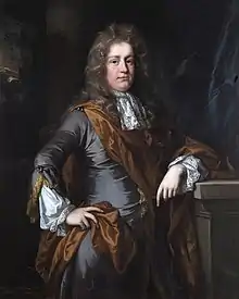 Dashwood was a Tory and strong Anglican; and a courtier under James II. Despite these views, he became involved in the matter of Edmund Prideaux, implicated in Monmouth's Rebellion in 1685. (There was a family connection, Prideaux being the brother of his mother-in-law Margaret.) Giving and lending money, Dashwood enabled Prideaux to pay off the accusation.[1][6] He was elected three times as Member of Parliament for Banbury from 1689; and for Oxfordshire in November 1699, losing his seat in 1700. As the 1690s proceeded, he became identified with the Country Party opposition.[7]