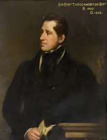 Sir Robert George Throckmorton, 8th Baronet (5 December 1800 – 28 June 1862) was an English Whig and Liberal politician who sat in the House of Commons from 1831 to 1835.