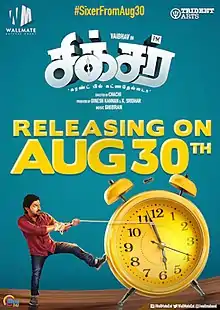 Sixer is a 2019 Indian Tamil language romantic action comedy film written and directed by Chachi, marking his directorial debut. The film stars Vaibhav and Palak Lalwani, with Sathish and Radha Ravi playing the supportive roles.[1] M. Ghibran composed music for the film while cinematography was handled by P. G. Muthiah.[2] The story of Sixer follows a person with night blindness, who faces difficulties in routine and love life because of his condition. The film was theatrically released on 30 August 2019.[3] The film received positive reviews from critics.[4]