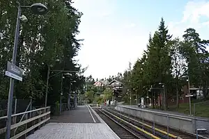 Skådalen is a station on the Holmenkollen Line (Line 1) of the Oslo Metro. It is between Midtstuen and Vettakollen.[1] The station was opened on 31 May 1898 as part of the tramway to Besserud.
