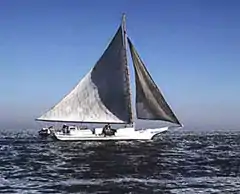 Joshua Slocum piloted a modified Skipjack,[2] a gaff rigged sloop named Spray in the first solo global circumnavigation. He wrote about the experience in his classic Sailing Alone Around the World. The rigging was modified to a Yawl near the Strait of Magellan.[3]