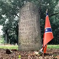 Camp Captain Mooney Cemetery was established on the same day of the battle. The cemetery is named after the Camp Captain Mooney outpost in the vicinity of where the battle occurred. The camp name comes from Jesse E. Mooney of the Louisiana Militia.[3] It is owned by the United Daughters of the Confederacy.[4]