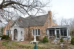 The Smith House is a historic house at 806 NW "A" Street in Bentonville, Arkansas. It is a 1+1⁄2-story L-shaped Tudor Revival house, with a rubblestone exterior. Its main (west-facing) facade has a side-gable roof, with two projecting gable sections. The left one is broader and has a shallow pitch roof, while that at the center is narrower and steeply pitched, sheltering the entrance. It is decorated with latticework that frames the entrance. Built c. 1925, it is the only known Tudor Revival style house of this sort in Benton County.[2]
