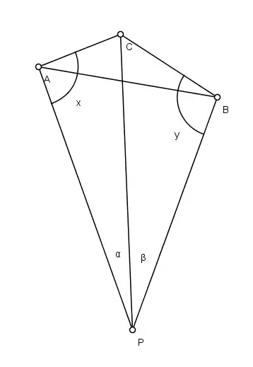 Denoting the (unknown) angles CAP as x and CBP as y gives: