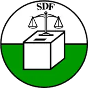 The Social Democratic Front (French: Front Social Démocrate) is the main opposition party of Cameroon. It was led by Ni John Fru Ndi from its foundation until his death in 2023, and receives significant support from the Anglophone Southwest and Northwest Regions.