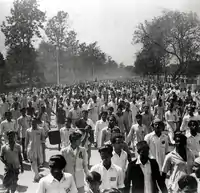 In contrast, the Communist Party was more active, populist, and had support from the rural class due to its tough position taken on economic and social issues.[8] The Communist Party quickly grasped its popularity as it espoused the causes of Pakistan's farmers and labourers against the nexus of zamindars, princely class, and landed gentry.[8] During the 1954 general elections, the Communist Party swiftly gained the exclusive mandate in East Pakistan and representation in West Pakistan; earlier in 1950, the Communist Party played a major role in labour strikes for the support of the language movement.[9] The Communist Party, with support from the Awami League, formed a democratic government in East Pakistan.[9] The class struggle reached its limit when members of PML and the Communist Party scuffled violently with East-Pakistani police in 1958.[9] The government responded by dismissing the government of the Communist Party in East Pakistan and arresting ~1,000 members of the Communist Party in West Pakistan, eventually banning the Communist Party there as well.[10]