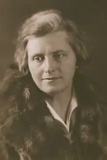 Čiurlionienė continued to be active in public life. In March 1929, she attended a meeting on the situation in Eastern Europe organized by the Women's International League for Peace and Freedom (WILPF) in Vienna. Her efforts to defend Lithuania's territorial claims to Vilnius Region received praise in Lithuania and she was sent to the 6th congress of WILPF in Prague in August 1929.[16] She also became a member of the Lithuanian government delegations to the Assembly of the League of Nations in 1929–1931 and 1935–1938.[1] The other two members of the 1929 delegation were Prime Minister Augustinas Voldemaras and diplomat Vaclovas Sidzikauskas.[17] In 1930, she joined the League's Fifth Committee which dealt with social and humanitarian questions such as human trafficking, prostitution, children's welfare.[16] In Switzerland, she learned about the Union of Friends of Young Women (French: Union internationale des Amies de la jeune fille) established in 1877 and founded its chapter in Lithuania (Mergaičių bičiulių draugija) in 1929. The union sought to help young women who moved from villages to larger cities to avoid being exploited or trafficked.[3][16] In 1935, Čiurlionienė returned to the League and became a member of the Fist Committee (legal and constitutional questions) and Sixth Committee (mandates, slavery and political questions), but returned to the Fifth Committee in 1936.[16] In 1937, participated in the Second Congress of Lithuanian Women organized by the Lithuanian Women's Council where she read a paper on the causes for marriage failures.[10] The Lithuanian Women's Council unsuccessfully suggested her to the State Council of Lithuania and to run as a candidate to the Fourth Seimas.[17]