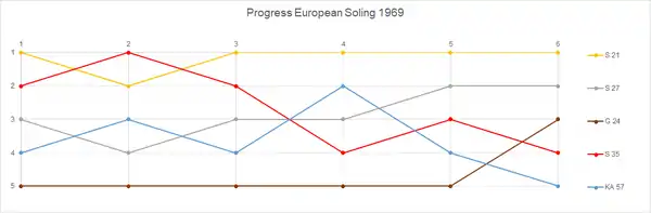 The main article describes all European Soling Championships from one the first held in 1968 to the announced Championships in the near future. This article states the detailed results, where relevant the controversies, and the progression of the Championship during the series race by race of the European Soling Championships in the years 1968, 1969, 1970, 1971, 1972, 1973, 1974, 1975, 1976, 1977, 1978 and 1979. This is based on the major sources: World Sailing, the world governing body for the sport of sailing recognized by the IOC and the IPC, and the publications of the International Soling Association. Unfortunately not all crew names are documented in the major sources.