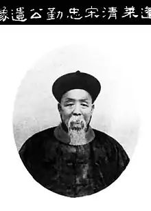 Song Qing (simplified Chinese: 宋庆; traditional Chinese: 宋慶; pinyin: Sòng Qìng; Wade–Giles: Sung Ch'ing) (1820–1902), courtesy name Zhusan, was a Chinese general who served the Imperial government during the First Sino-Japanese War and in the Boxer Rebellion.