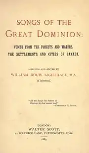 Songs of the Great Dominion was a pioneering anthology of Canadian poetry published in 1889. The book's full title was Songs of the Great Dominion: Voices from the Forests and Waters, the Settlements and Cities of Canada.[1] The collection was selected and edited by William Douw Lighthall of Montreal. It was published in London, England by the firm of Walter Scott, as part of its "Windsor Series" of anthologies.[2]