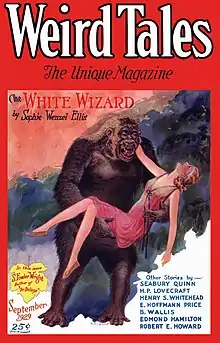 Weird Tales (September 1929), featuring a cover illustration based on Ellis's story "The White Wizard"