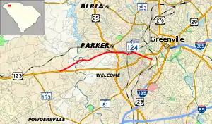 South Carolina Highway 124 (SC 124) is a 5.630-mile (9.061 km) state highway in the U.S. state of South Carolina. The highway connects Parker and Greenville.