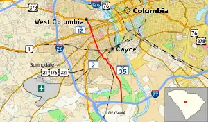 South Carolina Highway 35 (SC 35) is a 5.630-mile-long (9.061 km) state highway in the U.S. state of South Carolina. The highway connects the southern part of Cayce and West Columbia.