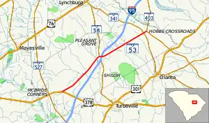 South Carolina Highway 53 (SC 53) is a 11.900-mile-long (19.151 km) state highway in the U.S. state of South Carolina. The highway connects Shiloh with rural areas of Sumter County.