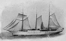 Southern Cross 4 (British Registry Official Number 98988) was a three-masted schooner, foremast, square-rigged, main and mizzen, fore-and-aft rig. 240 tons with auxiliary steam. The ship was built in Wivenhoe, Essex, England by Forrest & Sons in 1891 at a cost about £9,000, which was contributed by Bishop John Richardson Selwyn and others. This ship was in service from 1892 to 1902. When this vessel was sold, her engine was removed, and she operated as a cargo vessel around Australia and New Zealand until being lost with all hands off King Island, Tasmania in 1920.[6]