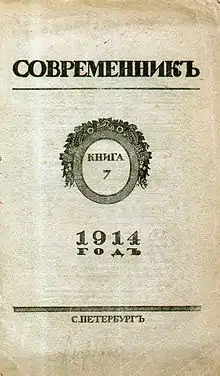 Sovremennik (Russian: Современник, The Contemporary) was a Russian monthly magazine of "literature, politics, science, history, art and social life". It was published from 1911 to 1915 in Saint Petersburg. Its political philosophy was a cross between Narodism and Marxism. The first editor was Alexander Amfiteatrov with the support of Maxim Gorky who withdrew under the influence of Vladimir Lenin.[1]