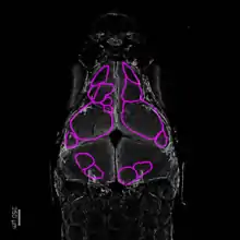 - ↑ DeLaurier A, Eames BF, Blanco-Sánchez B, Peng G, He X, Swartz ME, et al. (August 2010). "Zebrafish sp7:EGFP: a transgenic for studying otic vesicle formation, skeletogenesis, and bone regeneration". Genesis. 48 (8): 505–11. doi:10.1002/dvg.20639. PMC 2926247. PMID 20506187.
