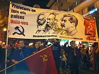 As part of the Coalition for Communist Unity together with the PCPE |