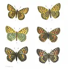 Speyeria clara is a species of fritillary butterfly of the family Nymphalidae. It has an eastern range in the Palearctic realm – the Himalayas, Tibet, Kashmir, Sikkim. Speyeria clara was first described by Émile Blanchard in 1844.[2]
