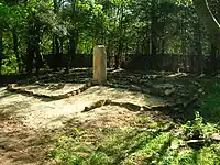 Seventy ex-pupils from Spier's died in the First and Second World Wars. A War Memorial was located within the school, however since the demolition of the school no publicly accessible memorial has existed and the old rose garden at the 'Garden of Remembrance' has long been overgrown. In 2012 an old Spier's gatepier was collected, cleaned and placed within the old garden as a War Memorial. The group Youth Making Beith Better (YMBB) created a labyrinth around the standing stone War Memorial as a religious memorial - the 'one true path', etc. as found in several cathedrals and in other religious contexts.