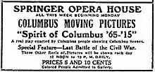 - ↑ "Columbus Picture To Be Shown Tomorrow". Columbus Ledger. April 11, 1915. p. 3. OCLC 8808667.