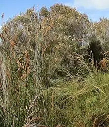 | Sporadanthus ferrugineus growing at the bog of Moanatuatua Scientific Reserve | |