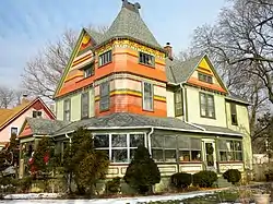 German immigrant William Grote was the first major real estate developer in the north district and also persuaded several industries to locate in Elgin. He co-developed Grote and Waldron's Second Addition in 1881 on the east side of Spring Street between Lincoln and Slade Avenues, which was directly advertised to those working at the factories he lured. Immediately north of this development was owned by fruit grower Steven Slade, who developed a residential district there in 1881. The Lovell family owned the land to the west of these developments, which became a popular picnic location. Lovell's descendants eventually recorded these areas as residential developments in 1893 (Jefferson to Slade Ave.) and 1913 (north of Slade Ave.). Unlike the southern portion of the district, the northern part features more ornate styles of architecture. These buildings were mostly erected for prosperous Elgin citizens between 1868 and 1913, and thus reflect popular architectural trends of the time. The northern part of the district provided homes for dentists and physicians from Sherman Hospital.[2]