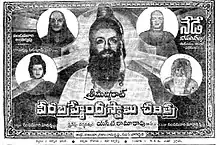 Sri Madvirat Veerabrahmendra Swami Charitra is a 1984 Indian Telugu-language biographical film, based on life of Pothuluri Veerabrahmam, produced and directed by N. T. Rama Rao under his Ramakrishna Cine Studios banner. N. T. Rama Rao portrayed the characters of Gautama Buddha, Vemana, Ramanuja, Adi Shankara along with the title role. It stars Nandamuri Balakrishna, Rati Agnihotri and Kanchana with music composed by Susarla Dakshinamurthi. Actually, shooting of the film was completed by 1981, but the release got delayed due to objection from the censor board asking to delete a few scenes from the movie, to which NTR did not agree and immediately took the matter to court and finally got it released in November 1984.[1][2][3][4]