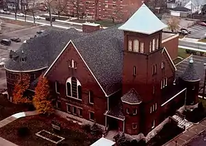 An addition to the building was completed in 1983, consisting primarily of the Meeting Place and the Herman-Clark Hall, along with significant renovations to the offices and Sunday School rooms in the southern part of the building.