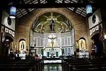 The first Italian immigrants arrived in Des Moines in the 1870s, with most arriving between 1880 and 1915.[2] They followed the streetcar lines to areas south of the Raccoon River. Davenport Bishop Henry Cosgrove appointed the Rev. Francis Leonard to found St. Anthony's parish in 1898, but difficulties arose and the project came to an end. In 1906, Cosgrove assigned the Rev. Victor Romanelli to found the parish on Des Moines' south side. Romanelli was a native of Naples and had served parishes in New York and New Jersey. He acquired an old fire station where he resided and where the parish's first Mass was celebrated on August 19. Property was acquired on Columbus Avenue and a small brick church was built there. The Rev. Michael Flavin, the pastor of St. Ambrose Church opposed the establishment of the parish and incorrectly insisted it was established as an Italian ethnic parish because he did not want to lose the parish territory or income.[2] The Des Moines Diocese was established in 1911 and St. Anthony's transferred to the new diocese. A second floor was added to the church building and the parish school was opened in 1912 with the Congregation of the Humility of Mary providing the faculty. By 1956 it was the largest school in the diocese.[2] The present brick Romanesque Revival church was built in 1931 during the pastorate of the Rev. Cornelius Lalley (1928-1955).[3]