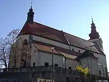 St. George's Church (Slovene: cerkev sv. Jurija) is a parish church in Ptuj, northeastern Slovenia. It was built in the 12th century and in the 15th century redesigned in the Gothic style. Viewed from Slovene Square (Slovenski trg, the southwest), it is located behind the monolithic Roman tombstone, the Monument of Orpheus, and the free standing Town Tower. There are Renaissance and Baroque gravestones on the exterior walls of the church. The paintings in the interior were made from the late 13th to the end of the 15th century. In 1863 the church became Provost.[1]