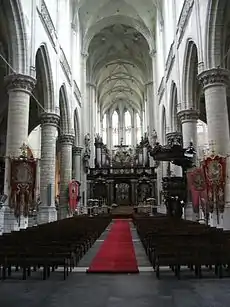 Among the Baroque interior decorations are the carved wooden choir stalls, created between 1658 and 1670, the opulent main altar (1685) and the communion rails of the holy chapel (1695). The central pulpit was created in 1675 by Lodewijk Willemsens.