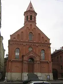 St. John's Church (Russian: Церковь Святого Апостола Иоанна; Estonian: Jaani kirik) is a Protestant church in St. Petersburg, Russia.[1] The church is situated at the address 54 ulitsa Dekabristov, close to the Mariinsky Theater. Founded in 1859 to serve the Estonian community living in the city at that time, it is considered Estonia's symbol of independence. It was the place where in 1888 Jakob Hurt made the call to resist the Tsarist government's russification policy and on March 26, 1917, 40,000 Estonians began their march to Tauride Palace demanding national autonomy.