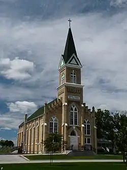 The parish outgrew this original structure and commissioned a Milwaukee architect, Jon Paulu, to design a new one.[4] Construction began on the brick stricture in 1892, after Fr. Vaclav Kozelka returned as pastor, and was completed in 1894.[3] The church continued to grow and serve as a center for local ethnic Czechs well into the 20th century; Czech remained the language used for religious instruction until 1930, and worship services in Czech were held into the 1940s.[2] In 1996, reflecting a decline in the local population, it was linked with the parish of St. Joseph-St. John of Pilsen. In 1998, both parishes as well as St. Hedwig in West Kewaunee were organized under the same administrator, and finally, on July 1, 2000, the three parishes were merged into the parish of St. Therese de Lisieux.[3]