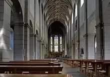 The Romanesque St. Matthias' Basilica, which was dedicated on 13 January 1148, combines four functions. It is the parish church of the parish of the same name; the monastic church of the Benedictine community; a pilgrimage church centred on the tomb of Saint Matthias the Apostle; and the burial church of the first bishops of Trier, Eucharius und Valerius.[1] The church building, like all such, is in a constant state of tension between on the one hand the preservation and care of the structure, and on the other the need to meet current demands.