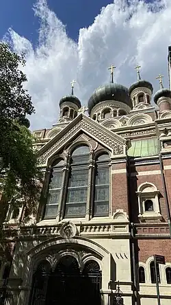 St. Nicholas Russian Orthodox Cathedral is the home of a congregation which was founded in the early 1890s on Second Avenue. In 1899, the church began a building fund with seed money from Czar Nicholas to build a new church.[1] The Cathedral, designed by Finnish-born architect John Bergesen, was completed in 1902 at 15 East 97th Street in Manhattan. Since 1903, the Cathedral has served as the headquarters for the Russian Orthodox faith in the United States. The building was designated as an official city landmark by the New York City Landmarks Preservation Commission in 1973.[2]