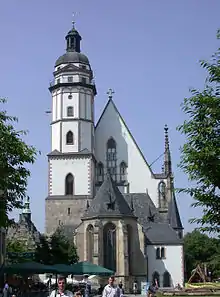 Wolfgang Amadeus Mozart played the church organ on one of his European tours in 1789.[2] In 1806, the church served as a munitions depot for the French army. During the Battle of Leipzig in 1813, it was used as a military hospital.[1]: 5