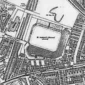 1890 map shows wet, sloping industrial site chosen for new ground.