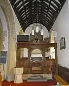 The south porch bears a wall sundial dated 1773 which may also be the date of the porch. A major restoration in 1762 changed the church interior to a Classic or Romanesque style at which time most of the windows were altered. The wooden screen between the nave and the Pickwell Chapel with its Corinthian pilasters and broken segmental pediment dates to this time[4] and was restored in 1912.[2] New boxed seating was installed in 1767 together with raised galleries for the gentry on the west wall.[6]