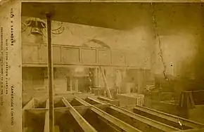 According to former county archaeologist Alison Taylor, the church was serving the impoverished and fast-growing community of the upper town,[11] in the neighbourhood of the castle mound, and its shire hall (assize court) (1842) and prison, when a new building was planned, incorporating elements from the previous church.[7][12] The new Victorian building, standing a little north of the one it replaced, was erected to the design of T. H. and F. Healey, architects, of Bradford. In the new church, the early 12th-century chancel arch of the older church was reset between the south aisle and the south chapel, and a late 12th-century doorway was reset between the north aisle and the vestry.[1] The stone Carr Monument (early 17c.), commemorating Nicholas Carr, appointed the University's second Regius Professor of Greek in 1547, was reset in the south wall of the south chapel (the Lady Chapel).[7][13]