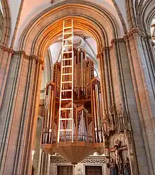 The earliest instrument can be traced back to 1386. In the 16th century, an organ was built in 1538. Another (new) construction of an instrument was probably completed around 1580 or 1590. This instrument with 25 registers on three manuals and pedal later came to the Catholic church in Alstätte in the Ahaus district.[10]