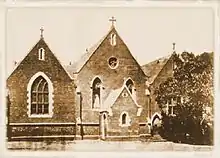 St Mary's Star of the Sea Girls School began operating in the old church building around 1855. The first certified teacher in charge was Kate Quinn who was working with two assistants by 1860.[3] In 1865 she was replaced by Elizabeth Fogarty (née Griffiths) and in turn she was replaced by Miss Walsh in 1876. In 1871 an additional aisle was added to the old church to cater for the expanding local population. The number of worshippers attending services and an increasing number of school students forced the addition of another aisle in 1876.