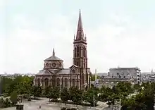 The Church of the Holy Apostles Peter and Paul in Bydgoszcz is located in Bydgoszcz, Poland, on Wolności Square. Patron saints are Saint Peter and Saint Paul. The church, richly decorated with polychrome has been realized in 1957 by Władysław Drapiewski from Pelplin and Leon Drapniewski of Poznań; it has been registered on the Pomeranian Heritage List on 5 October 1971.[1]