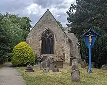 The church has a nave with a north aisle and vestry, a Perpendicular Gothic west tower, a chancel and a south porch.[6] The nave was rebuilt in the late 15th or early 16th century to meet a tower of approximately the same age; it is often dated to 1521, but appears to be built on older foundations.[1] The southern side of the nave contains what are probably thirteenth-century buttresses and a pair of Perpendicular Gothic windows.[7] The north aisle was originally built in the 13th century,[1] and rebuilt by H.J. Underwood in 1890; the vestry was built in the 17th century and rebuilt in 1846 to designs by Chamberlain, through the generosity of the curate, Alexander Penrose Forbes.[1] The church has been reroofed at least twice, in 1825 and 1897.[1]