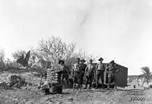 According to Falls, "numerous raids on the pattern of those familiar on the Western Front" were carried out.[82] [Note 10] However, it was necessary to conduct almost all activities at night because of the intense daytime heat.[13] Lieutenant R.H. Goodsall, assigned to the 74th Division, recounts that between 10:00 and 16:00 "the heat produced what the men called a 'mirage,' and rifle fire under such conditions was apt to be erratic ... By a sort of natural agreement, both sides shut down the war until the hours of dusk and darkness."[83] Then trenches were raided and fighting under exploding star shells and flares in no man's land occurred, while repairs and improvements to trenches were made, barbed wire strung, communication trenches widened, cables buried, and gun emplacements constructed.[13]