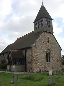 The current Church of England parish church is dedicated to Saint Albright, who is generally identified with Saint Ethelbert the King, a king of the Anglo-Saxon kingdom of East Anglia, who was killed in 794 AD.[6] It was in existence in the late 11th century and was a parish church soon afterwards but was referred to as a chapel in later documents.[4] The oldest parts of the present building date from the 12th century and incorporate Roman bricks in the heads of some of the windows. A new chancel was added in 1880 when the church was restored by George Gilbert Scott.[7]