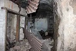 During World War II the tunnels were still being used and brick buildings were constructed within the cave and galleries.[2] A sign on the wall of the cave records that in 1941 this cave was the King's Regiment Battalion Headquarters.